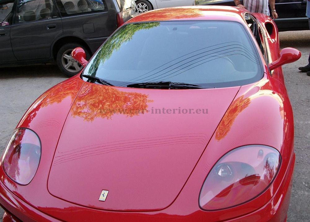 Αλλαγή ταπετσαρίας σε αυτοκίνητο μάρκας Ferrari. Τα καθίσματα επενδύθηκαν με γνήσιο δέρμα άριστης ποιότητας ενώ στα πλαϊνά και στον ουρανό τοποθετήθηκε αδιάβροχο και αλέκιαστο ύφασμα αλκαντάρα. Αντικαταστάθηκε η μοκέτα στο πάτωμα του αυτοκινήτου.